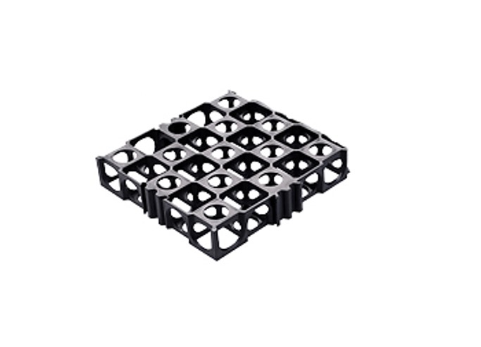 Celda tridimensional de alta resistencia hecha de polipropileno reciclado, ideal para construir superficies permeables.