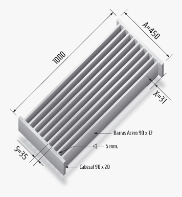 La Rejilla 45-9-R es una rejilla de sumidero tipo MOP, diseñada y fabricada de acuerdo con las especificaciones establecidas en el Manual de Carreteras – Volumen 4. Su construcción en acero de alta resistencia y su diseño optimizado garantizan un drenaje eficiente en calzadas de carreteras con tránsito urbano, excluyendo zonas de paso para peatones y ciclistas.